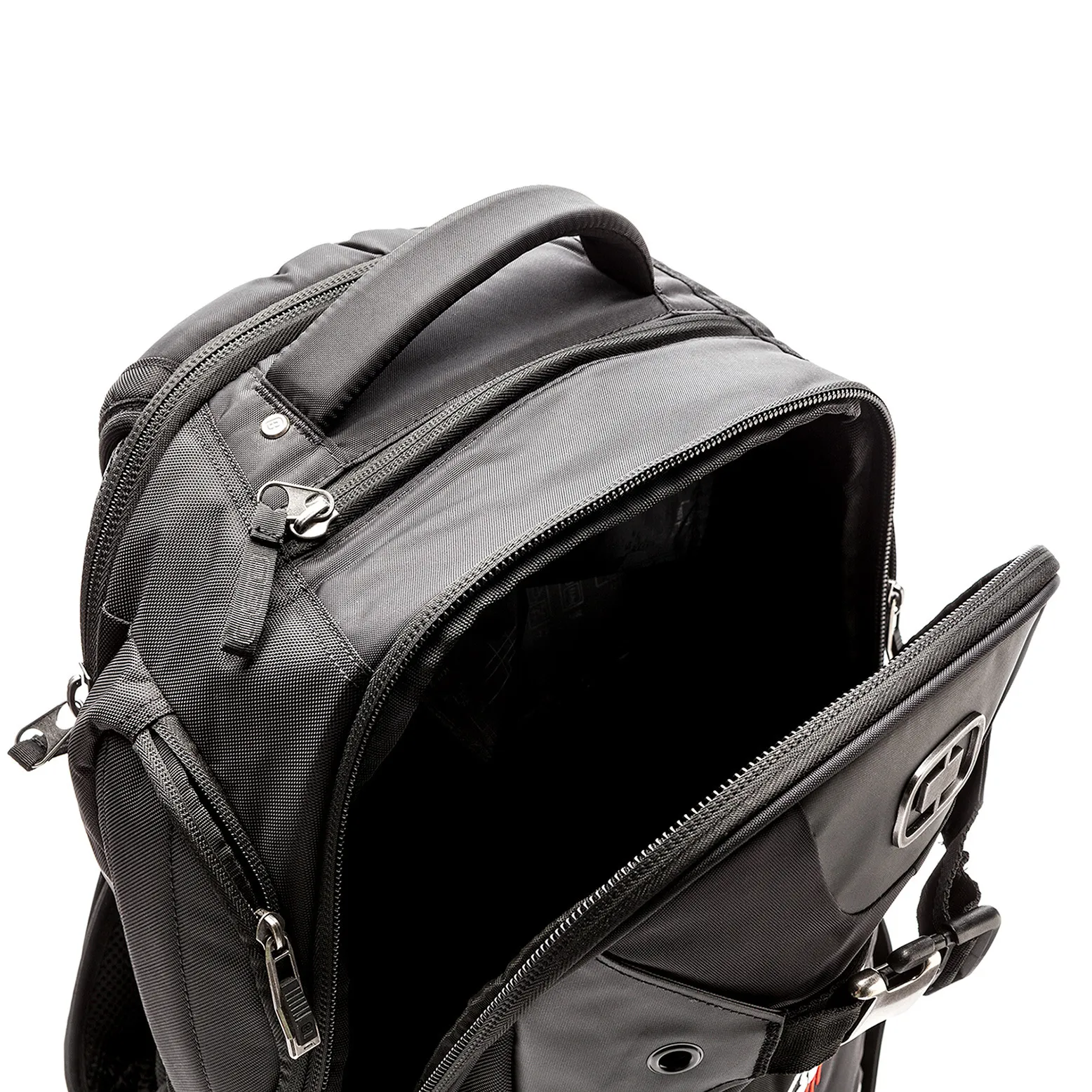 Loaded with functionality, this innovative pack features the HUB (Hybrid Unibody Backpanel) and O-Shox™ absorbing shoulder straps for ultimate comfort. 840D nylon/420HD nylon/420D dobby poly. Top-entry padded laptop compartment. Padded tablet/e-reader sleeve. Padded mouse/digital camera pocket. Fleece-lined valuables stash pocket. Deluxe organization panel with zippered stash pocket. Dual fleece-lined side accessory pockets. Quick-access expandable strap pocket.