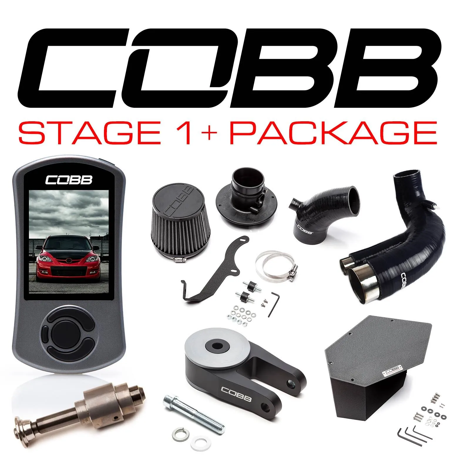 The COBB Tuning Stage 1+ Power Pack is the ultimate power bundle for your 1st Gen MAZDASPEED3! Simple plug-in and bolt-on installation offers excellent power gains with outstanding build quality. The Stage 1+ Power Pack includes: COBB Accessport - The most comprehensive MAZDASPEED OEM ECU tuning solution available. SF Intake & airbox - Power, looks, and sound! Turbo Inlet Hose - Optimized flow to your turbo! Rear Engine Mount - Improve traction and reduce wheel hop! The Stage 1+ Power Pack comes with your choice of either blue or black color for the SF Intake and Turbo Inlet hose.