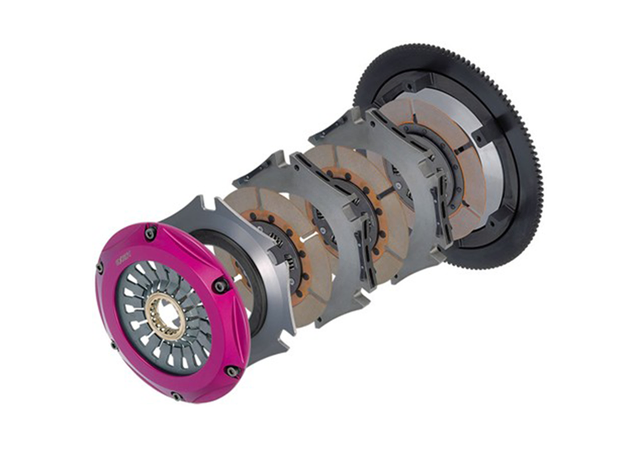 For high-powered applications, EXEDY offers twin and triple Multi-Plate clutches. These are designed for high power street action as well as drag, road and rally racing. The twin plate clutches are rated for approximately 500 ft/lbs of torque and the triple plates are rated for approximately 800 ft/lbs of torque, both figures at the flywheel. Twins come with both spring damper discs or solid discs depending on application, whereas triples are all solid discs and not recommended for street use.