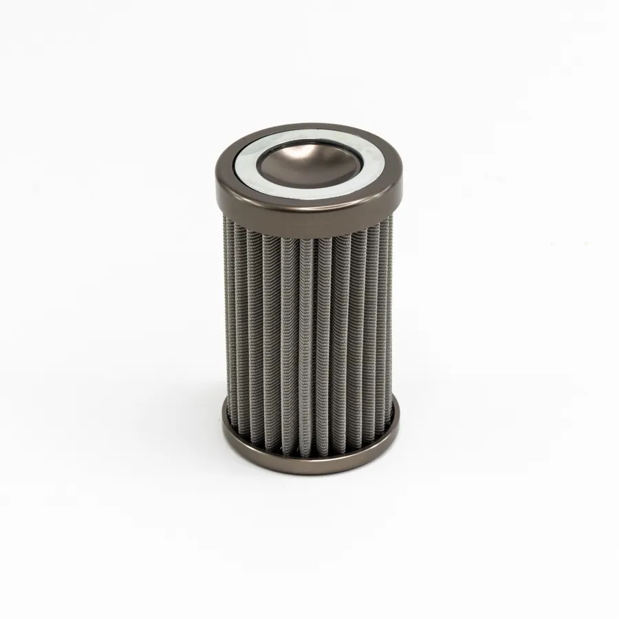 DW in-line fuel filters are available in several formats to fit your filtration needs. Two EFI-specific pore sizes are available (10u and 100u) for pre-pump or post-pump fitment. Each pore size is available in three different housing sizes (70mm, 110mm, and 160mm) to accommodate your flow, service interval, and space requirements. All housings are anodized T6061 with -10An ORB inlets and outlets. DW also offers a unique surge tank fuel filter that threads directly onto the 250iL or 350iL in-line pump.