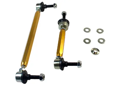 Not many enthusiasts are aware that OE and more importantly aftermarket sway bar effectiveness can be hindered by worn or inadequate mounts, drop links and lateral stoppers. Whiteline adjustable sway bar links are engineered to be up to the task with top spec, light weight componentry combined with a window of adjustability, eliminating sway bar preload on installation but most importantly ensuring the maximum output of the sway bar for improved grip and better handling.