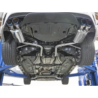 Quad 304 SS Tips: Finishing off this unique exhaust system are quad, double wall Takeda laser etched, 3-1/2" 304 stainless steel blue flame tips for an aggressive style.