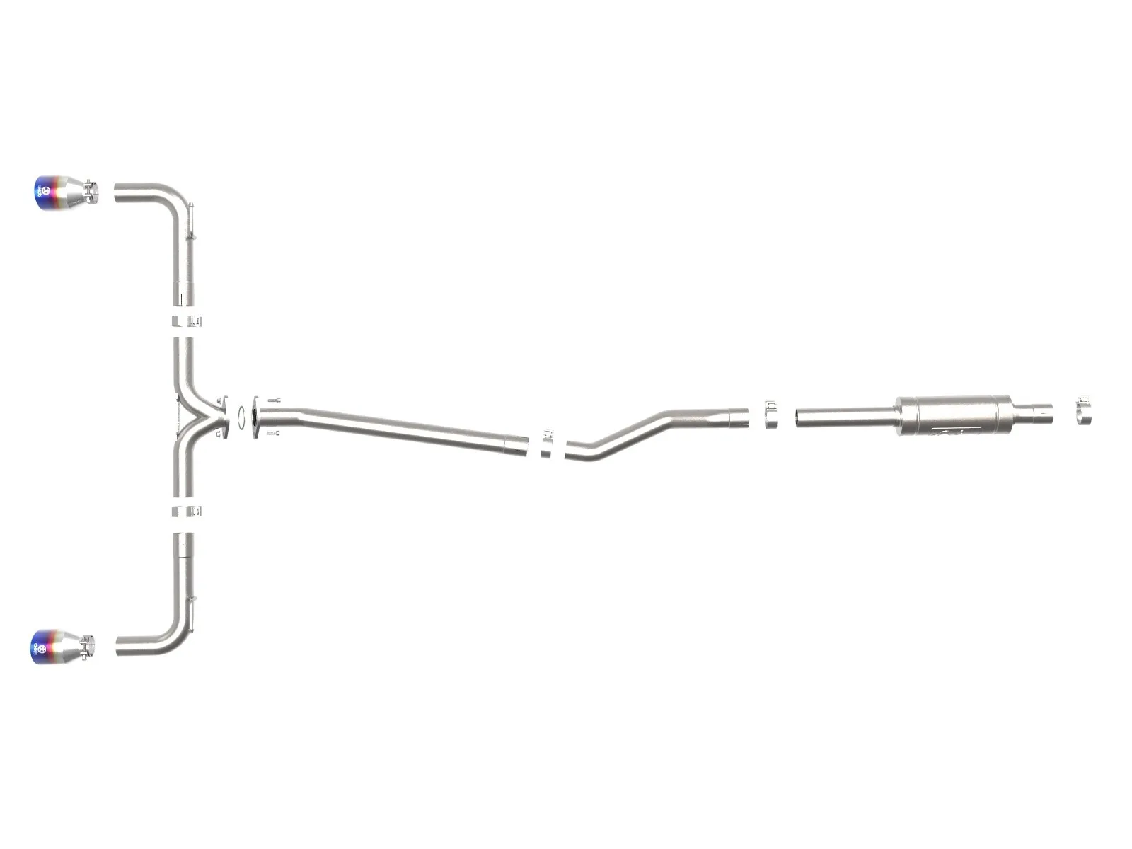 • Dual 4-1/2" Diameter Polished 304 Stainless Steel Clamp-On Exhaust Tips
