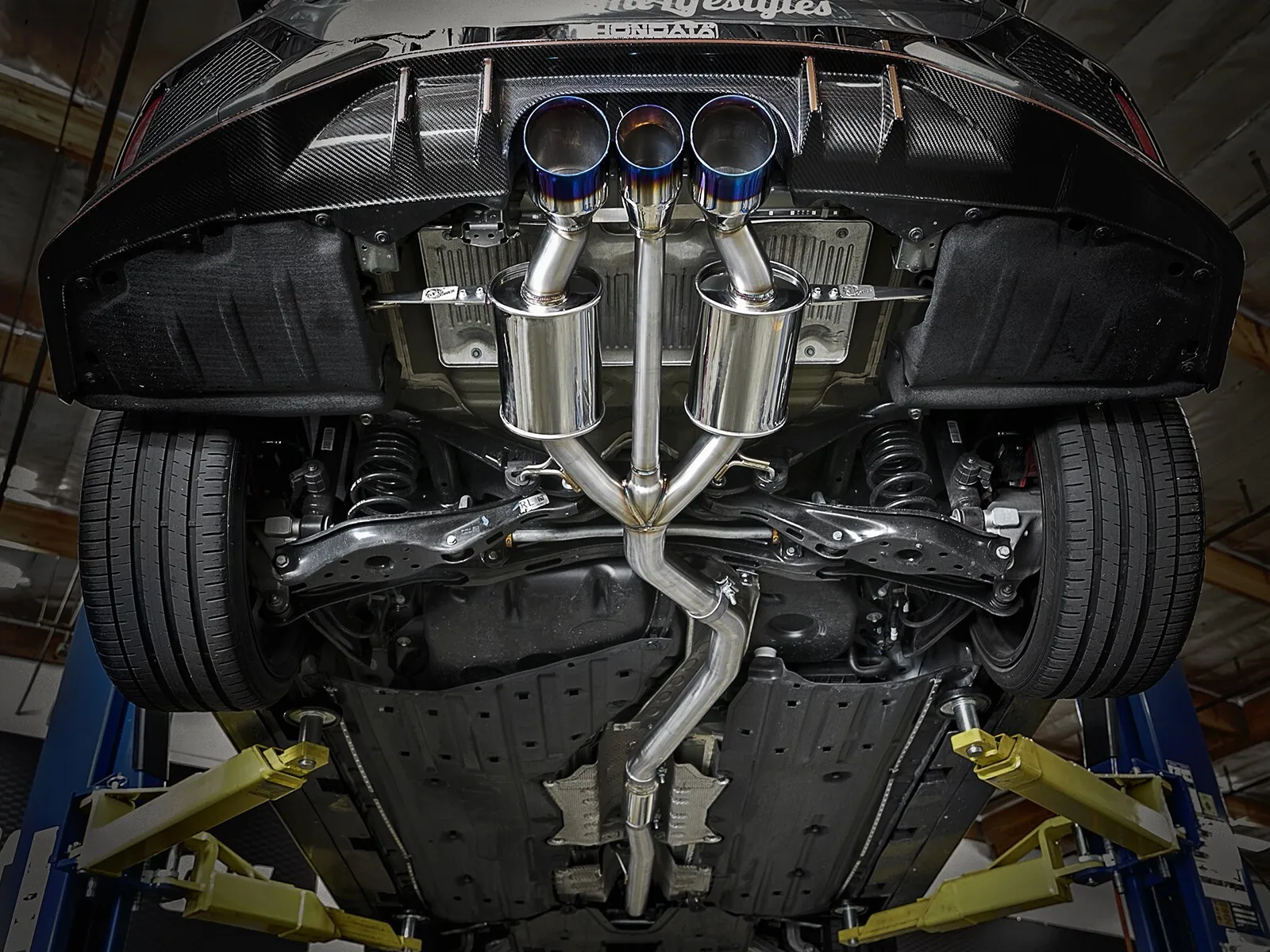 Unleash the full power and sound potential from your Honda Type-R with aFe's Takeda cat-back exhaust system. 3" mandrel bent, brush finished 304 stainless steel tubing merged into a 3-way tuned collector and dual, free-flowing mufflers allows your Type-R to breath and deliver gains of up to +19 HP/ +20 lb.-ft. of torque! 100% hand TIG-welded, this uniquely designed system incorporates a center "open-pipe" to improve performance across the power band while maintaining a smooth, deep tone. Dual 4-1/2" and single 3-1/2" carbon fiber tips ("Tri-Tip") provides a track-ready, competitive look.