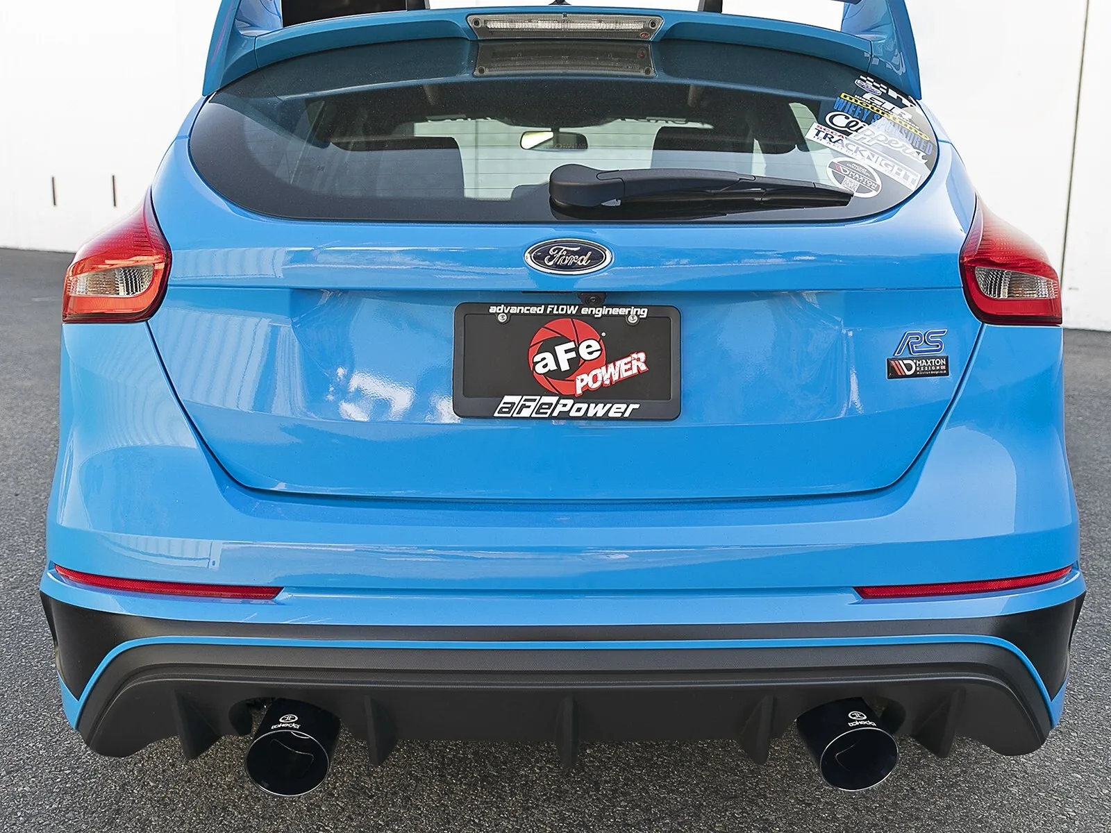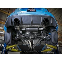 Power, sound and good looks is what this Takeda cat-back exhaust delivers. Power gains of up to +11 horsepower and +15 lbs. x ft. torque as shown on our in-house dyno. 3"- 2-1/2" mandrel bent 304 stainless steel tubing and high flow transverse muffler offers maximum exhaust flow and incorporates a factory style exhaust valve to control the exhaust note. The valve utilizes the factory valve motor and factory performance modes. When closed, it directs the exhaust through the high flow muffler for a smooth, tuned exhaust note. When opened, the exhaust is allowed to bypass the muffler and unleash the sound and performance of your RS. The high flow, stainless steel muffler is finished in high temp, metallic black powder coating for long lasting good looks. Dual 4 1/2" black stainless steel exhaust tips with laser etched Takeda brand logo for a custom finish.