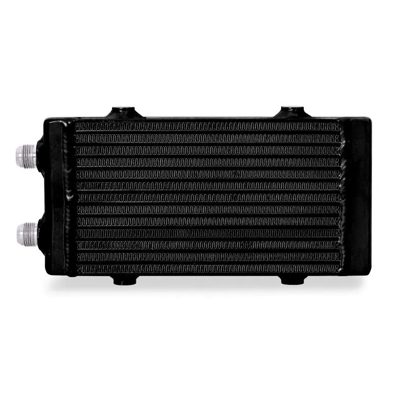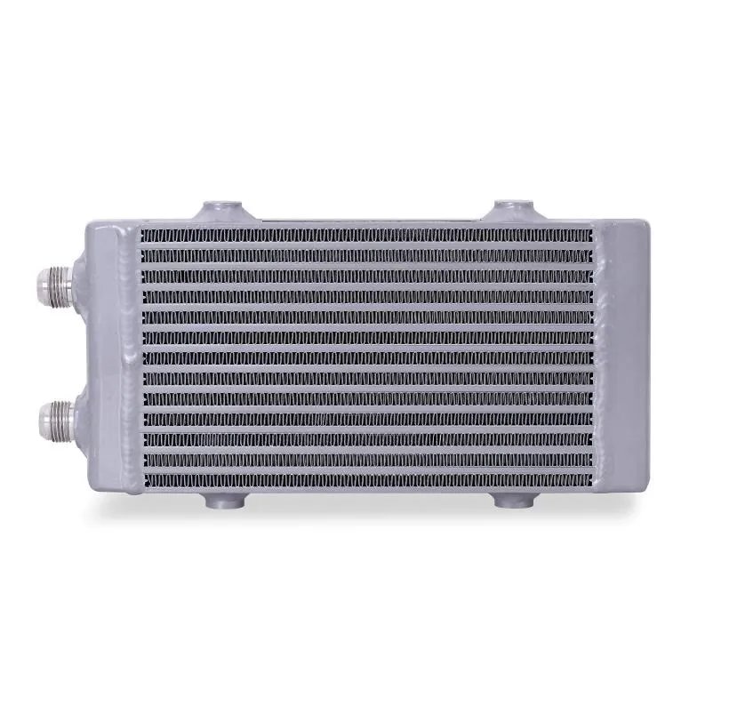 As anyone who’s spent some time on the track will tell you, one of the most important things to keep under control while pushing the limits of your vehicle is oil temperature. Oil that gets too hot will lose its viscosity, which is the very characteristic that makes it thick, slippery, and useful for lubrication. Adding a Mishimoto race oil cooler to your ride will ensure that your oil stays cool enough to do its job, extending the life of the high-wear components within your block and letting you focus not on keeping things cool, but taking home the checkered flag. Available in your choice of sleek silver or stealth black, this particular oil cooler features a dual pass core – oil enters one side, travels around the core, and exits again on the same side. Ideal for tight situations, Mishimoto’s small dual pass oil cooler will help keep temperatures in check while you shoot for the podium finish.