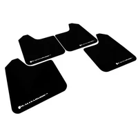 One set includes 4 Universal UR Plus urethane mud flaps (two left and two right) with a red Rally Armor Universal UR Plus logo. Due to the extensive variation of vehicles, hardware is not included.