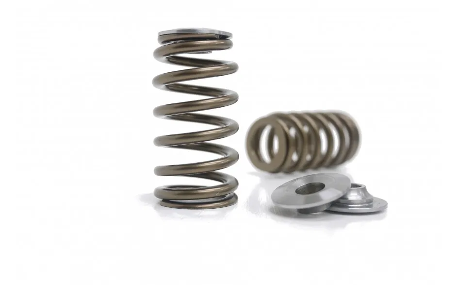 • Ovate wire, PACALOY Beehive valve spring set featuring nano-peen and gold nitride surface finishing for superior strength and performance. This spring and retainer set suits high rpm high boost racing applications with vvt disabled. 95lb seat pressure. 195lb at 12.00mm lift. Maximum lift 12.50mm