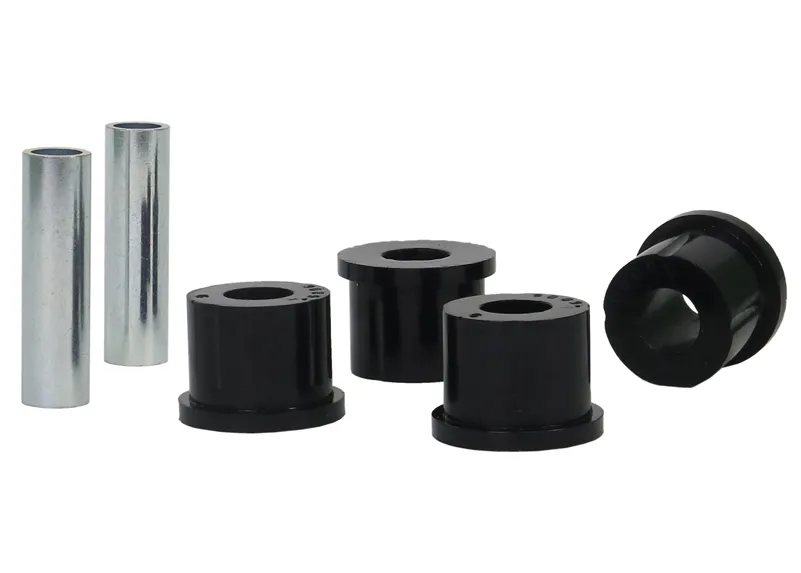A critical service item for any leaf sprung vehicle. High kilometres and heavy load carrying causes excessive wear on rubber bushings. Whiteline's signature black bushings are made tough and offer outstanding abrasion resistance, high load bearing capability (4WD's, utes and towing), flexibility, increased tensile strength and chemical resistance to oil, grease, ozone and weathering.
